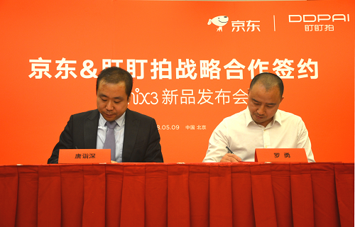 京东商城居家生活事业部汽车用品部总经理唐诣深与盯盯拍CEO罗勇签署合作协议